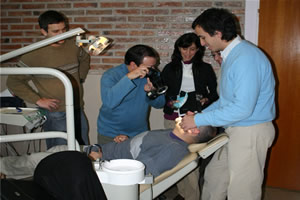 | Cursantes en la clínica tomando fotos intraorales en el Curso de Fotografía |